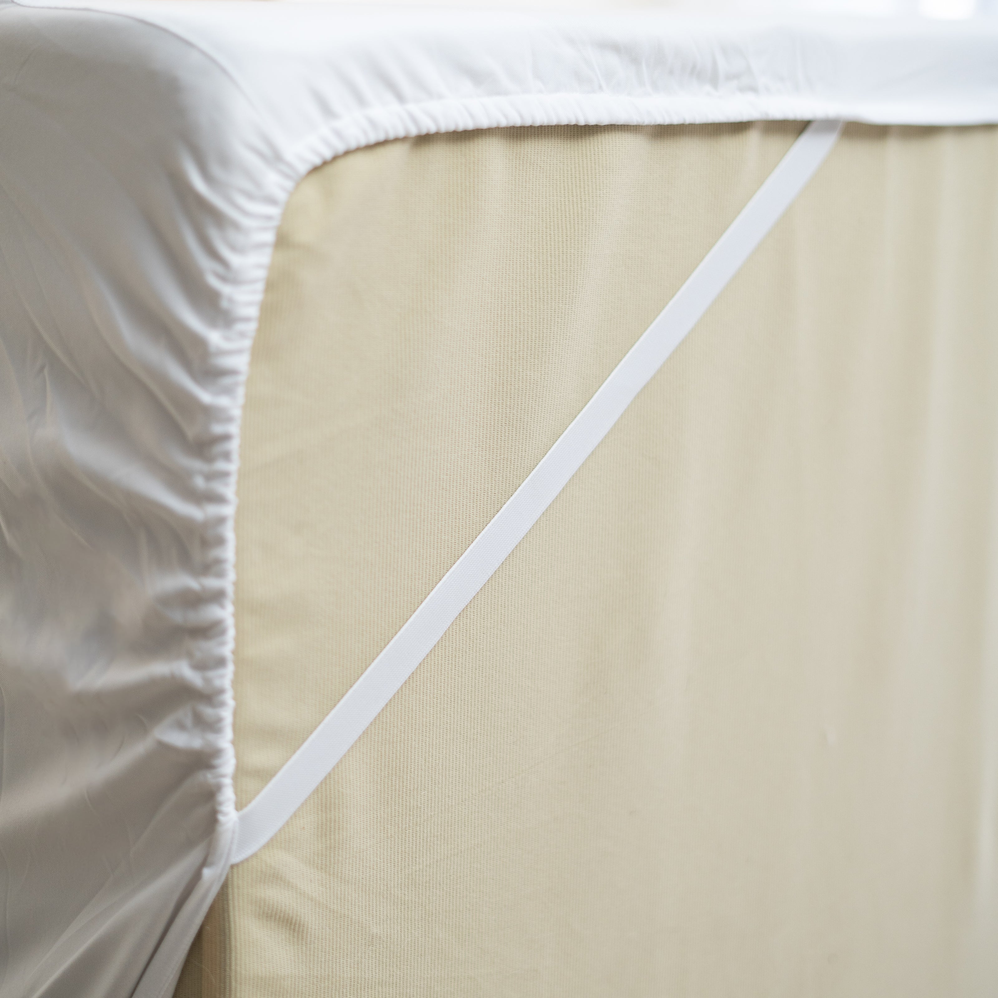 We've anchored a built-in corner strap and added an extra layer top stitch on the edge. This hugs your mattress and keeps your corners where they need to be.